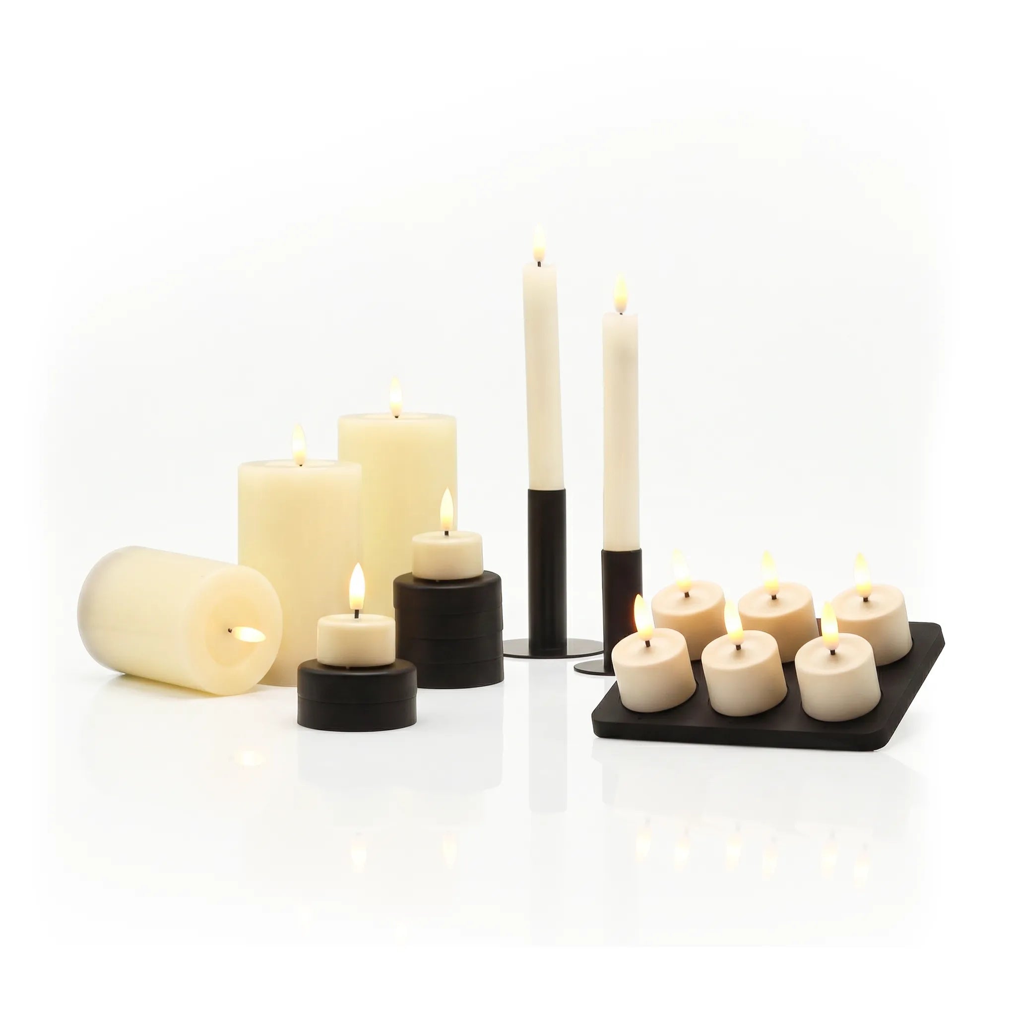 Doordat al onze LED-kaarsen (oplaadbaar én niet oplaadbaar) dezelfde vlam gebruiken, ontstaat er een perfecte eenheid in uitstraling.